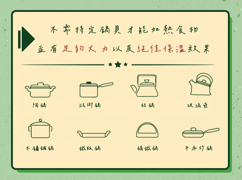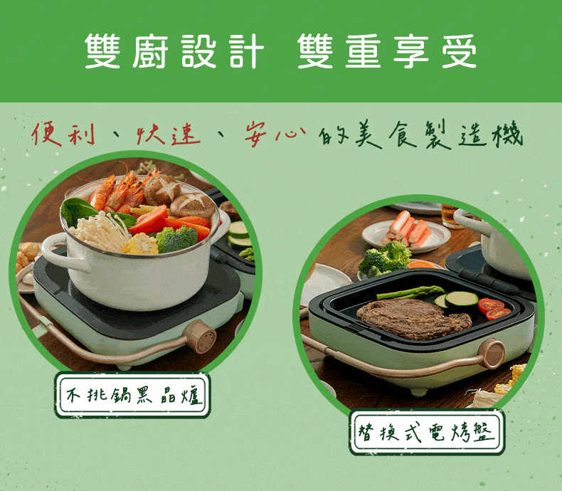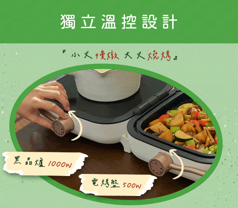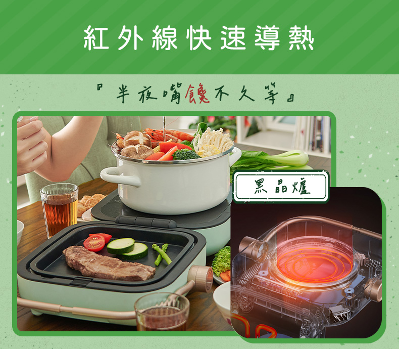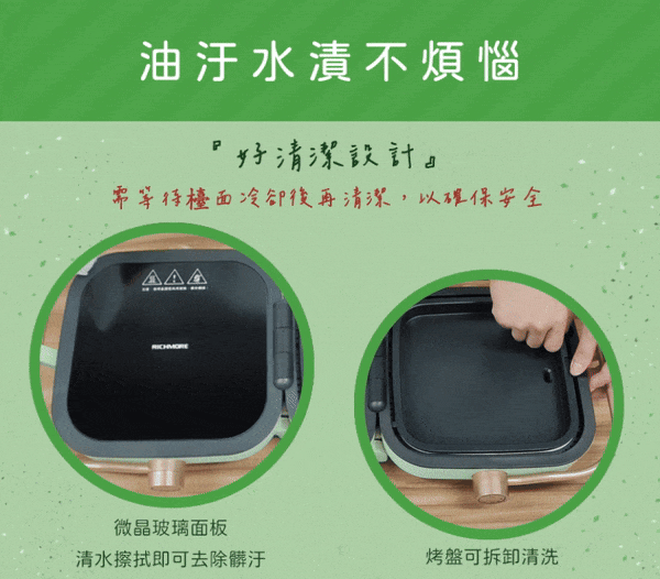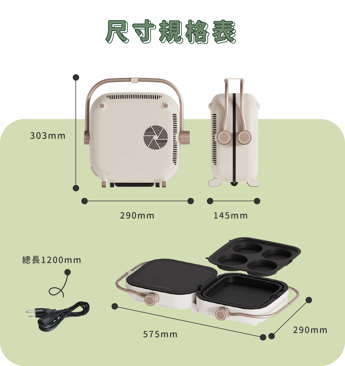 ◆ 便攜提把設計好移動提拿 ◆ 雙爐菜色料理:黑晶爐結合電烤盤 ◆ 獨立溫控:雙邊皆可獨立控溫使用 ◆ 品名:RICHMORE TwinChef雙廚折疊爐 ◆ 型號:RM-0648 ◆ 底殼、把手材質:PP材質 ◆ 烤盤材質:壓鑄鋁(表面噴食品級特氟龍塗層) ◆ 黑晶爐材質:微晶玻璃板 ◆ 主機折疊尺寸:約 303 x 290 x 150 mm ◆ 主機展開尺寸:約 575 x 290 x 75 mm ◆ 電源線長度:約 1200mm ◆ 烤盤尺寸:約 213 x 213 x 23 mm ◆ 黑晶爐加熱範圍:約直徑 240mm ◆ 淨重:約4kg ◆ 額定電壓:110V ◆ 額定頻率:60Hz ◆ 黑晶爐額定功率:1000W ◆ 電烤盤額定功率:500W ◆ 內容物:主機、平烤盤、電源線、產品說明書 ◆ 投保內容:已投保1000萬產品責任險 ◆ 產地:台灣品牌/中國製造/台灣監製 ◆ BSMI認證字號:R3D302 ◆ 保固期:原廠1年保固📌以上規格僅供參考,如有任何問題,請依原廠公告為主。📌使用前請詳閱說明書 ※ 本產品鑑賞期非試用期,若非商品本身瑕疵,一經拆封使用如造成污損或缺乏完整性,需酌收整新費用。注意事項:1.根據消保法第19條規定,網路購物消費者均享有商品到貨七天鑑賞期(非試用期)之權益。如欲試用請至原廠展示中心試用;3C商品如電腦、印表機、耗材類(碳粉匣、墨水匣、專用紙儲存媒體如光碟片、磁帶)及軟體類等商品,購買後一經拆封使用或安裝恕不退換,購買前應詳閱原廠之商品規格說明,本公司不接受購買試用後不滿意商品之理由退貨。購買前請務必確認機型是否為您所需!2.若商品本身瑕疵則可於收到貨品後十日內與我們聯繫換貨。從商品收訖起十天內為退換貨保證期,若超過此期間視同驗收完成不得退換貨。3.若您所訂購之商品無問題而您欲退貨,退回的商品必須是全新狀態(無拆封),包括主要商品、使用手冊、註冊回函、週邊零件,否則我們有權拒絕接收退貨。4.若商品因消費者個人不當使用拆卸產生人為因素造成故障、損毀、磨損、擦傷、刮傷、髒汙、包裝破損不完整者,或是發票、附配件不齊者,恕不接受退貨。5.由於物流公司每日貨量及交通因素,故無法指定到貨時間,確切配達時間皆以物流公司實際可配送時間為主。6.廠商保留出貨與否之權利,如遇商品缺貨、斷貨或其他不可抗拒之因素。7.商品說明文案為原廠(供應商)所提供,若有變更敬請參照實際商品為準。8.建議使用原廠耗材,以免失去保固資格。