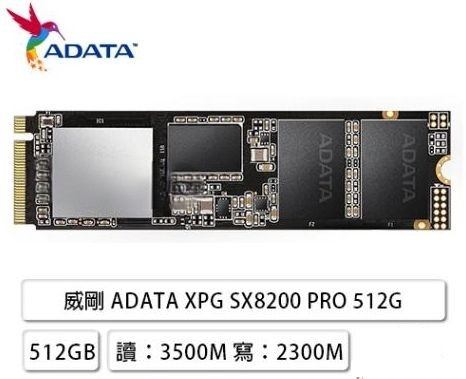 固態硬碟:威剛 SX8200Pro 512GB/M.2 Gen3