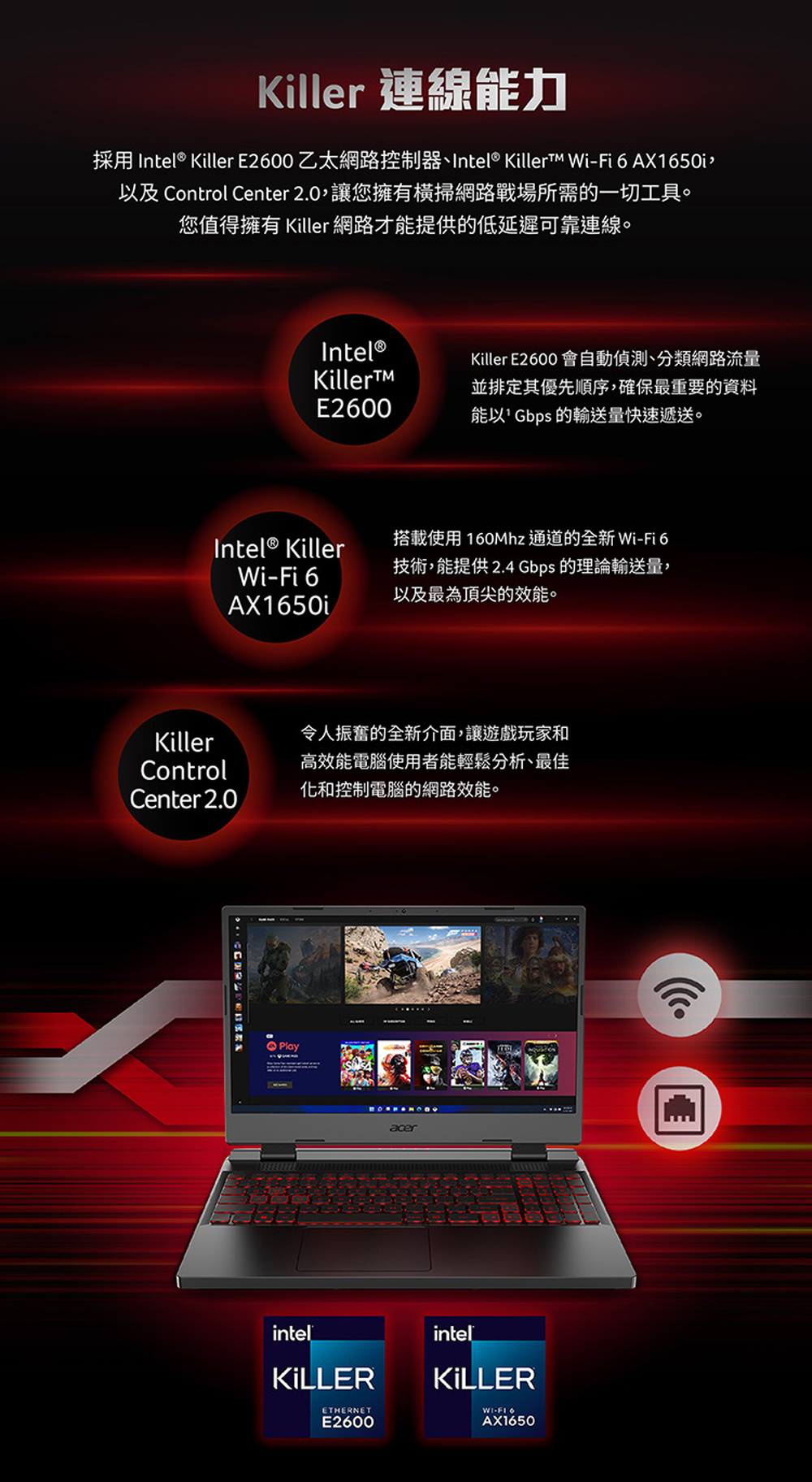 ◎ 無線網路:Killer™ Wi-Fi 6 AX 1650i