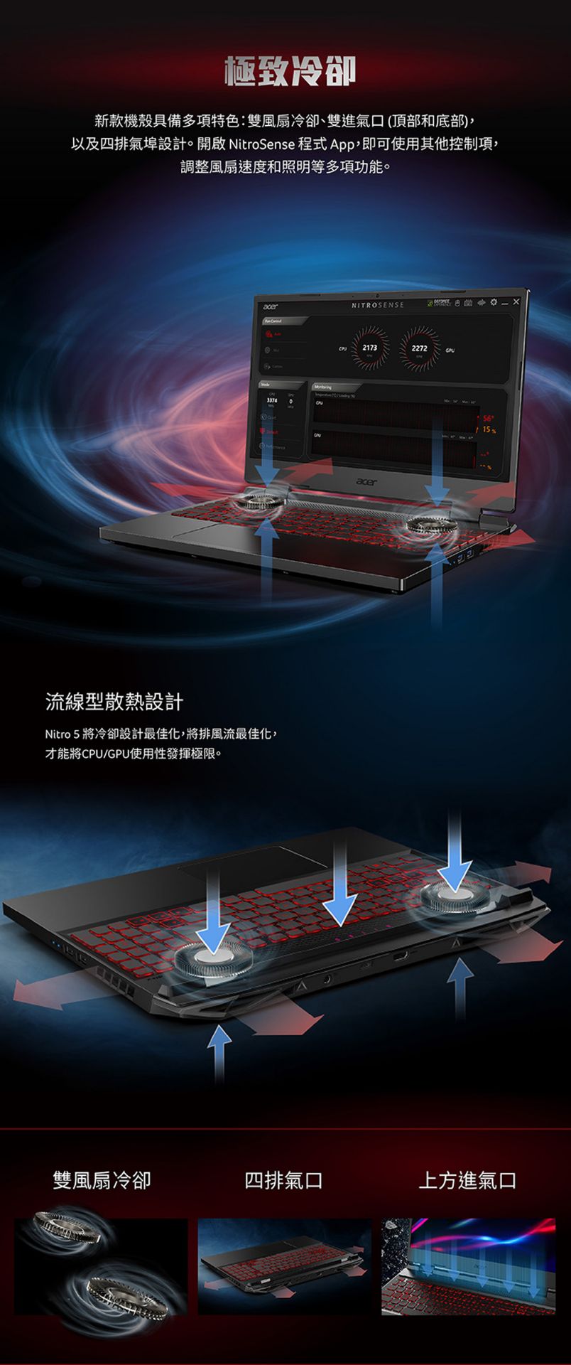 ◎ 雙風扇冷卻 + 4排氣孔 + 5根熱導管