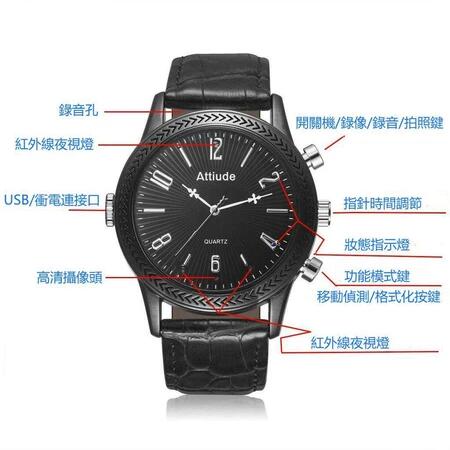錄音錄像支持紅外/夜視攝像功能,皮質錶帶高清攝像