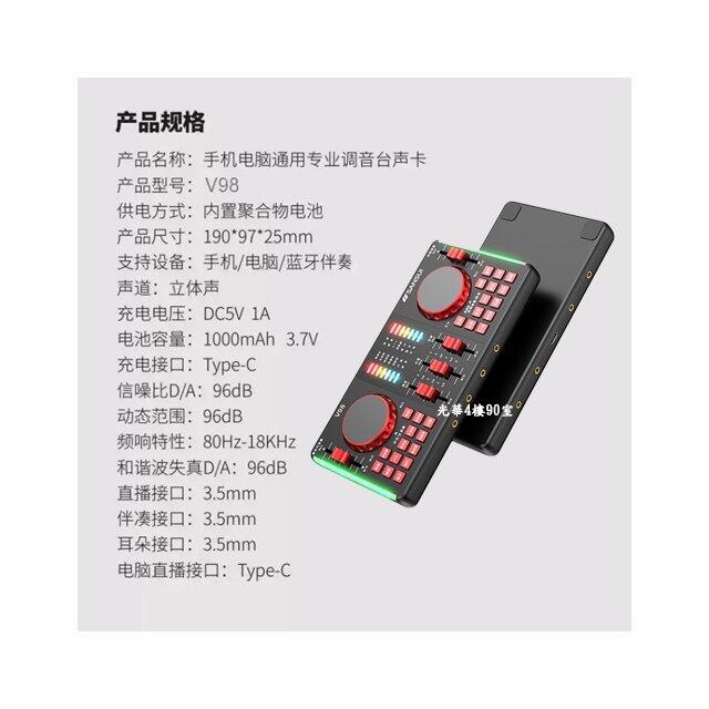 【山水直播聲卡V98】SANSUI V98 錄音 直播 廣播 專業直播聲卡 一鍵消音 雙DSP 雙手機 手機電腦平版通用