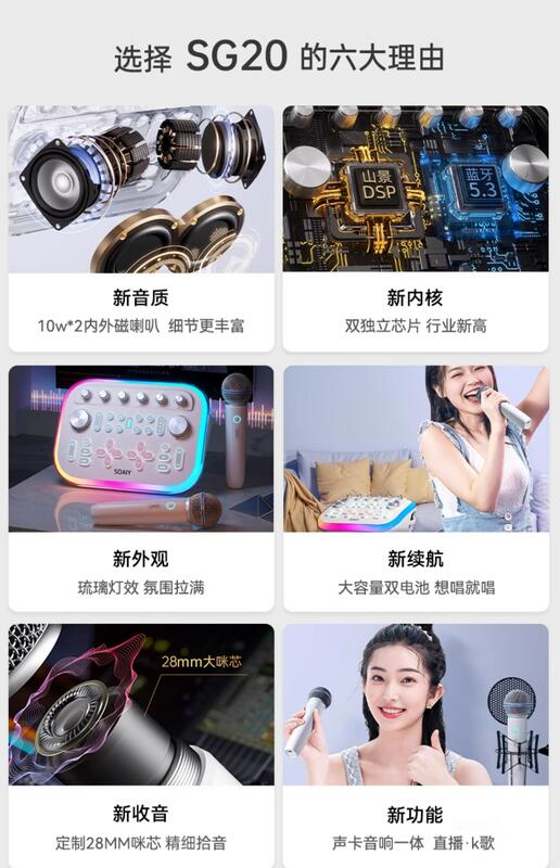 索愛SG20直播聲卡K歌音響手機無線唱歌家用話筒音箱一體麥克風ktv