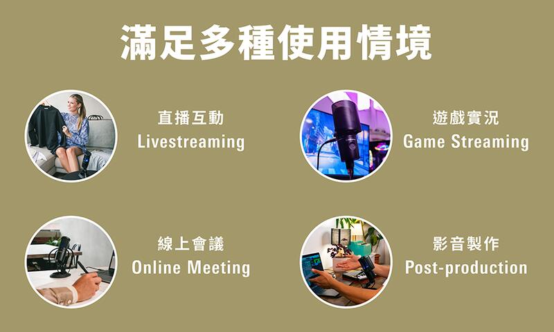 ・混音控制功能,可將麥克風訊號與電腦音訊內容自由混合。