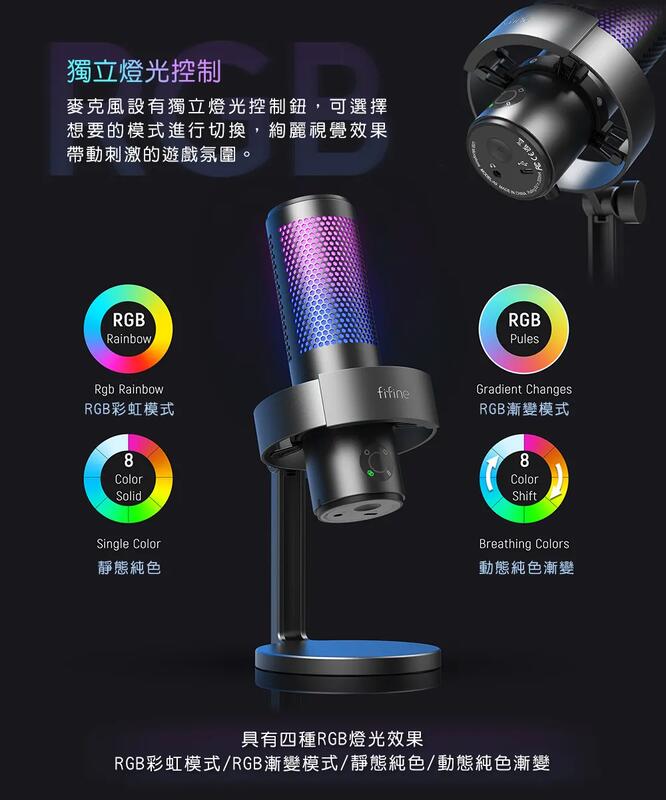 【FIFINE A9 USB專業級電容式RGB麥克風】
