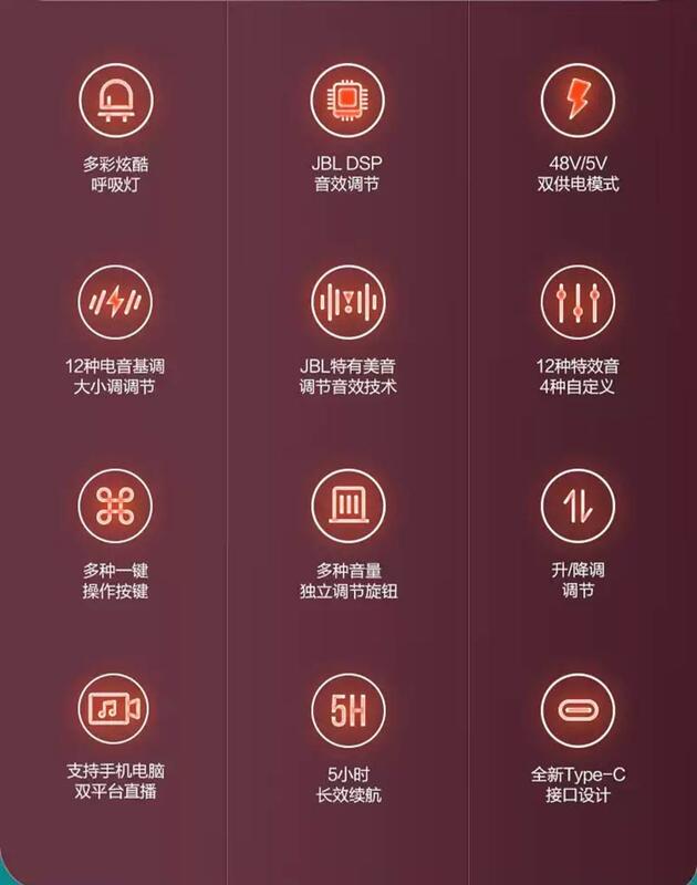 採用JBL 獨家研發DSP處理芯片和獨家JBL美音按鍵,可自行調節咪效果或一按自動調節唱歌或聊天效果!