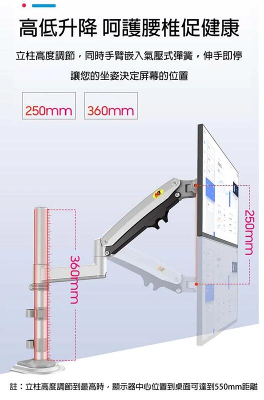 NB 17-30吋人體工學螢幕桌面顯示器支架 / H100