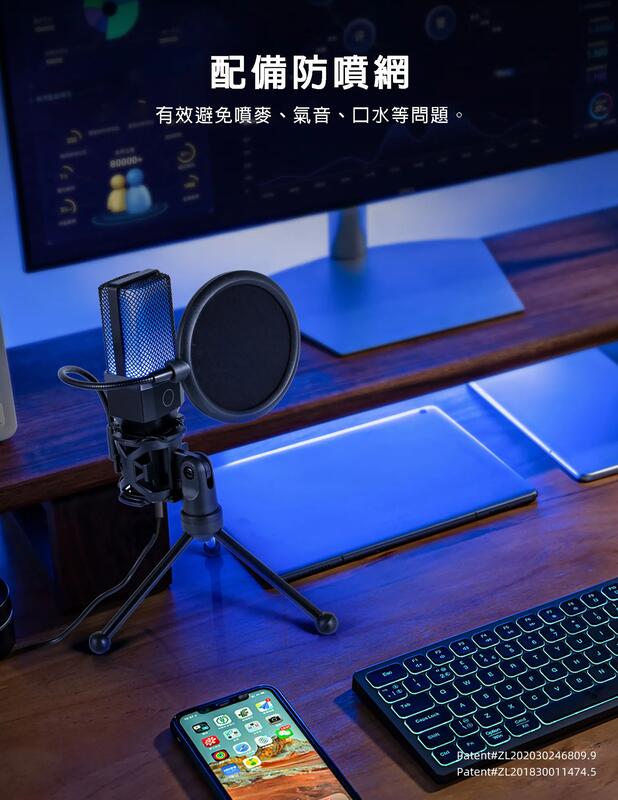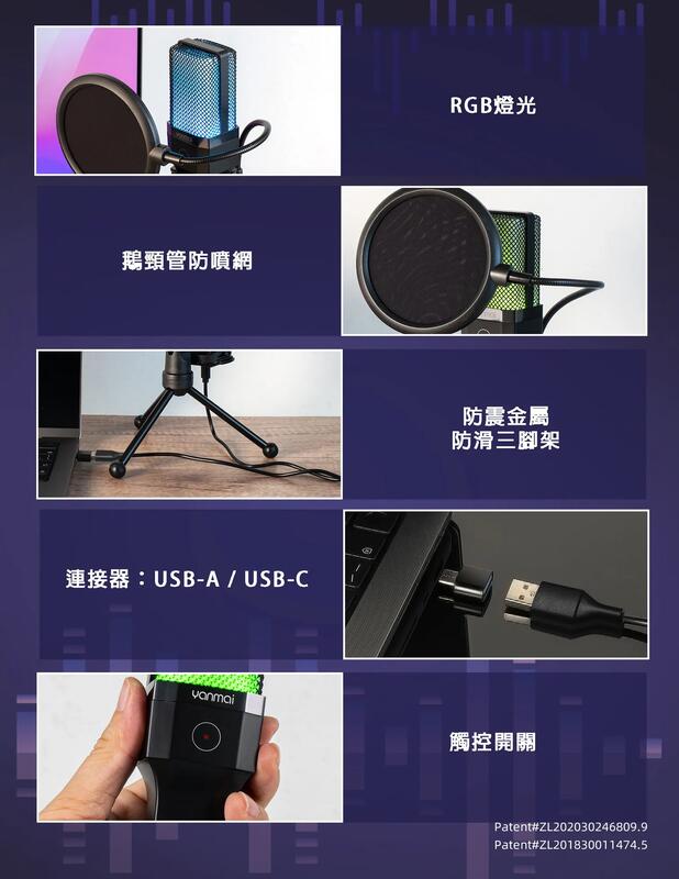 YAMNAI X1R 心型指向 RGB降噪電容麥克風 防噴網 桌上USB TYPEC麥克風 遊戲語音專用/有線/無線