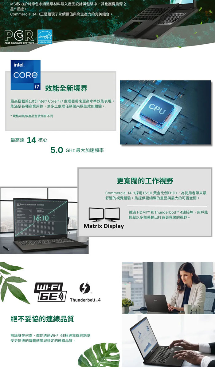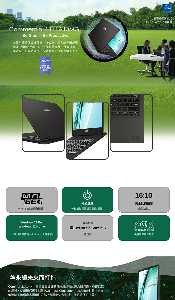 微星 Commercial i7-13700H/16G/512G/14吋 灰 14 H A13MG vPro-419TW