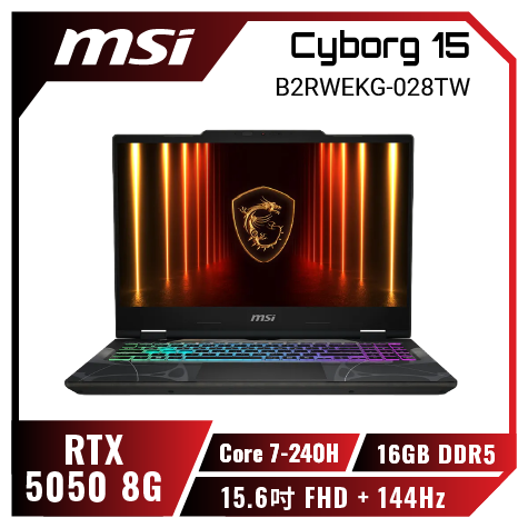 微星 Cyborg Core 7-240H/RTX5050/16G/512G/15吋 黑 15 B2RWEKG-028TW