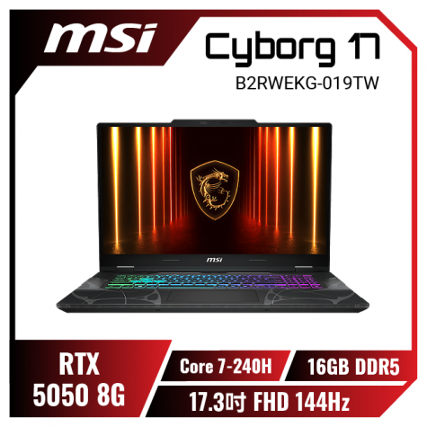 微星 Cyborg Core 7-240H/RTX5050/16G/512G/17吋 黑 17 B2RWEKG-019TW