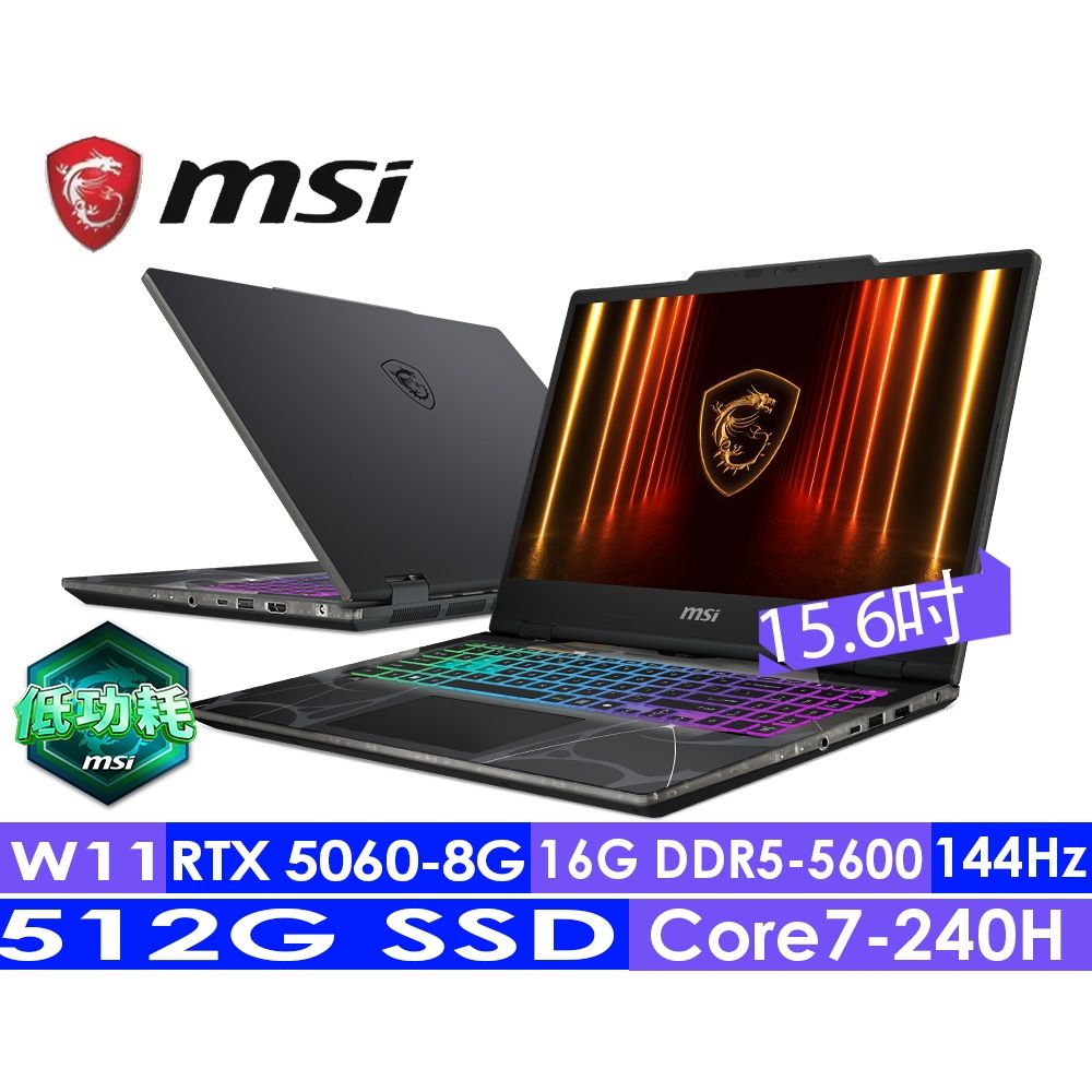 微星 Cyborg Core 7-240H/RTX5060/16G/512G/15吋 黑 15 B2RWFKG-027TW