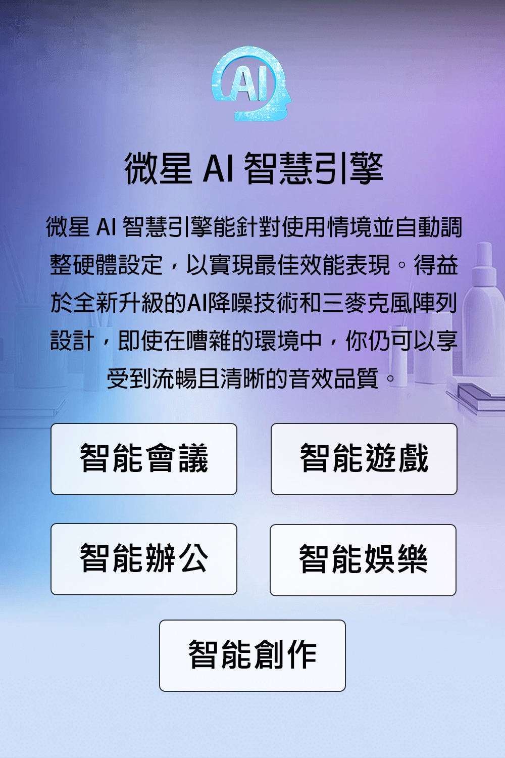 獨家微星AI智慧引擎針對使用情境自動切換最佳效能模式