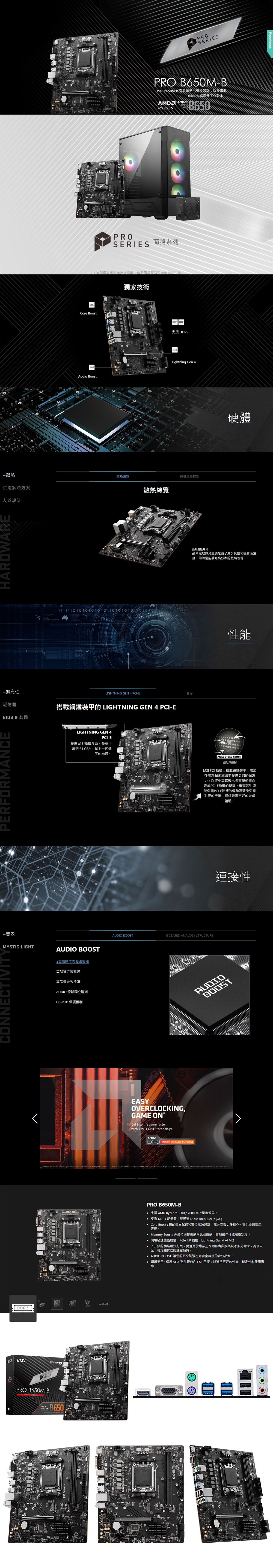 晶片組:AMD B650 處理器插槽:AM5 記憶體插槽:2 DIMM 擴充槽:1*PCI-EX16/ 1*PCI-EX1 USB介面:Front:6/Rear:6