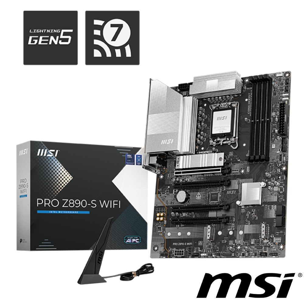 微星 PRO Z890-S WIFI(ATX/LAN 2.5Gb+Wi-Fi 7/註冊四年)12+1+1+1相