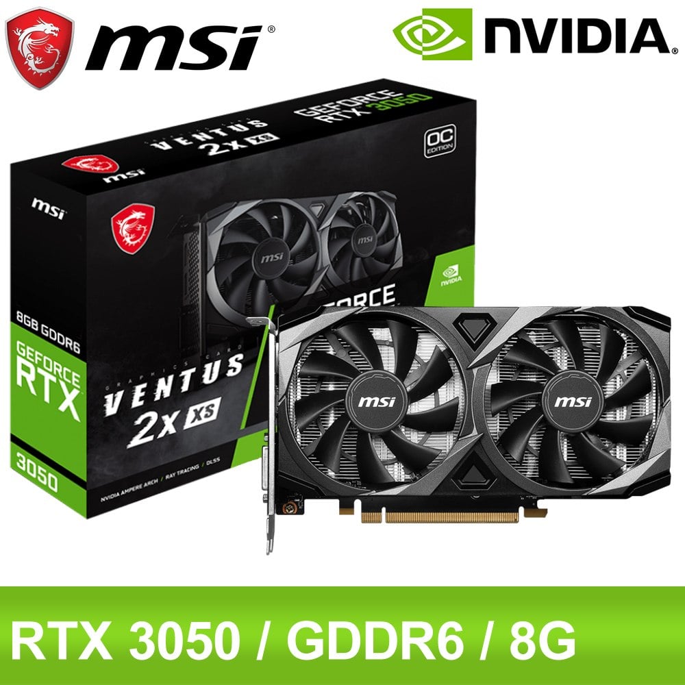 微星 RTX3050 VENTUS 2X XS 8G OC(1807MHz/21cm/雙風扇/註冊四年保)