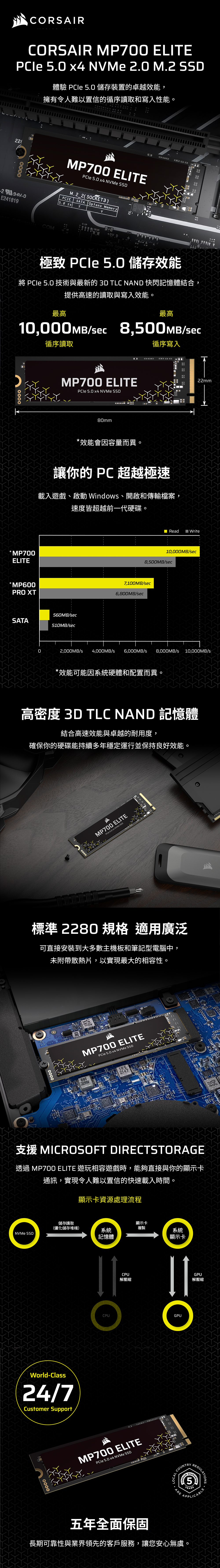 海盜船 Corsair MP700 ELITE 1TB Gen5/讀10000/寫8500【五年保】