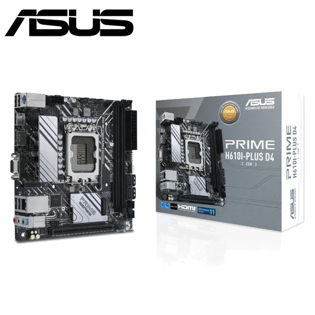 華碩 PRIME H610I-PLUS D4-CSM(Mini-ITX/1A1H1P/LAN 1Gb/2DIMM)5+1+1相