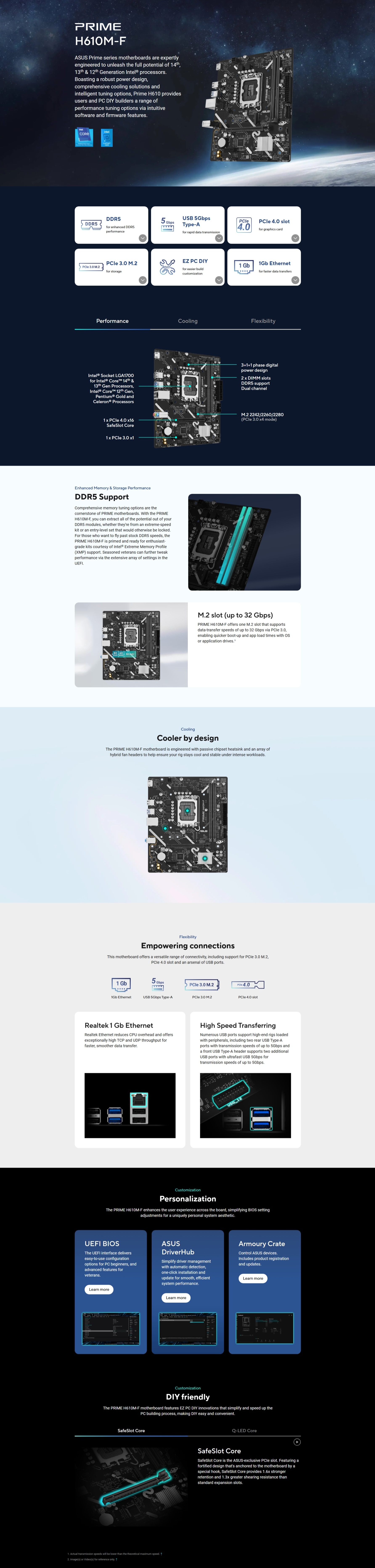 華碩 PRIME H610M-F(DDR5)(M-ATX/LAN 1Gb/註冊四年/2DIMM)