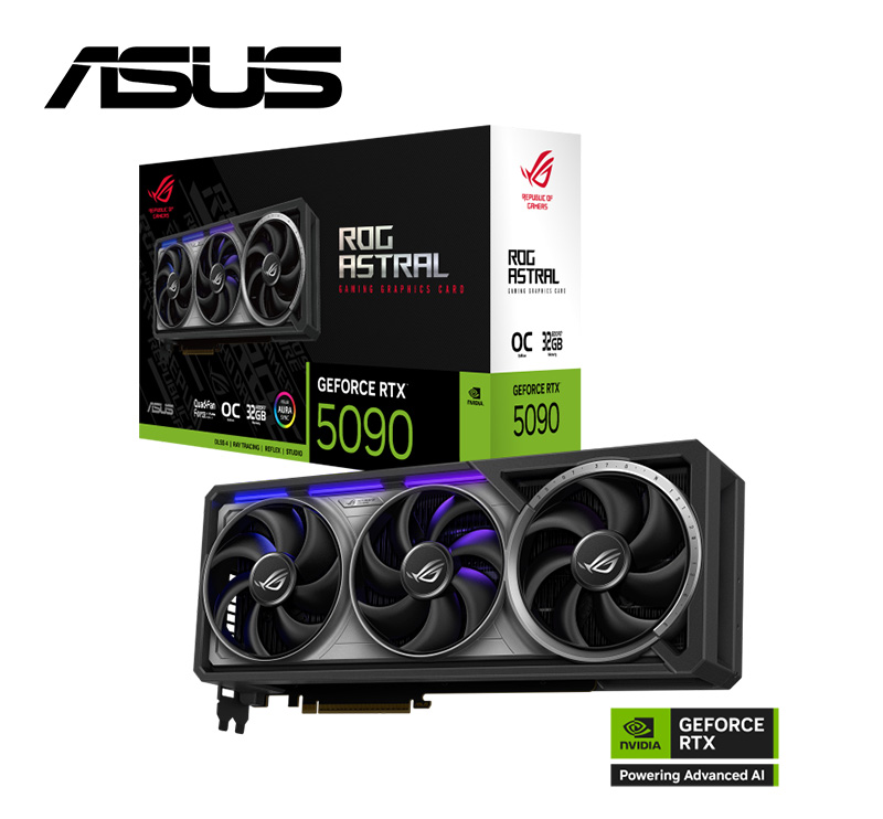 全新 ROG Astral 系列的靈感來自宇宙無限的廣闊和美麗,體現不斷探索和開拓前沿的創新理念。本著這項精神,ROG Astral GeForce RTX 5090 推出 ROG 首款四風扇顯示卡,並具備專利均溫熱導板、更高密度的散熱鰭片、相變 GPU 散熱片、極高的預設時脈速度、增強的功率輸出及更多特點。這些優質創新設計與吸睛的壓鑄框架及金屬 GPU 支架相得益彰,共同造就極致效能,甚至可因應最嚴苛的遊戲使用情境。