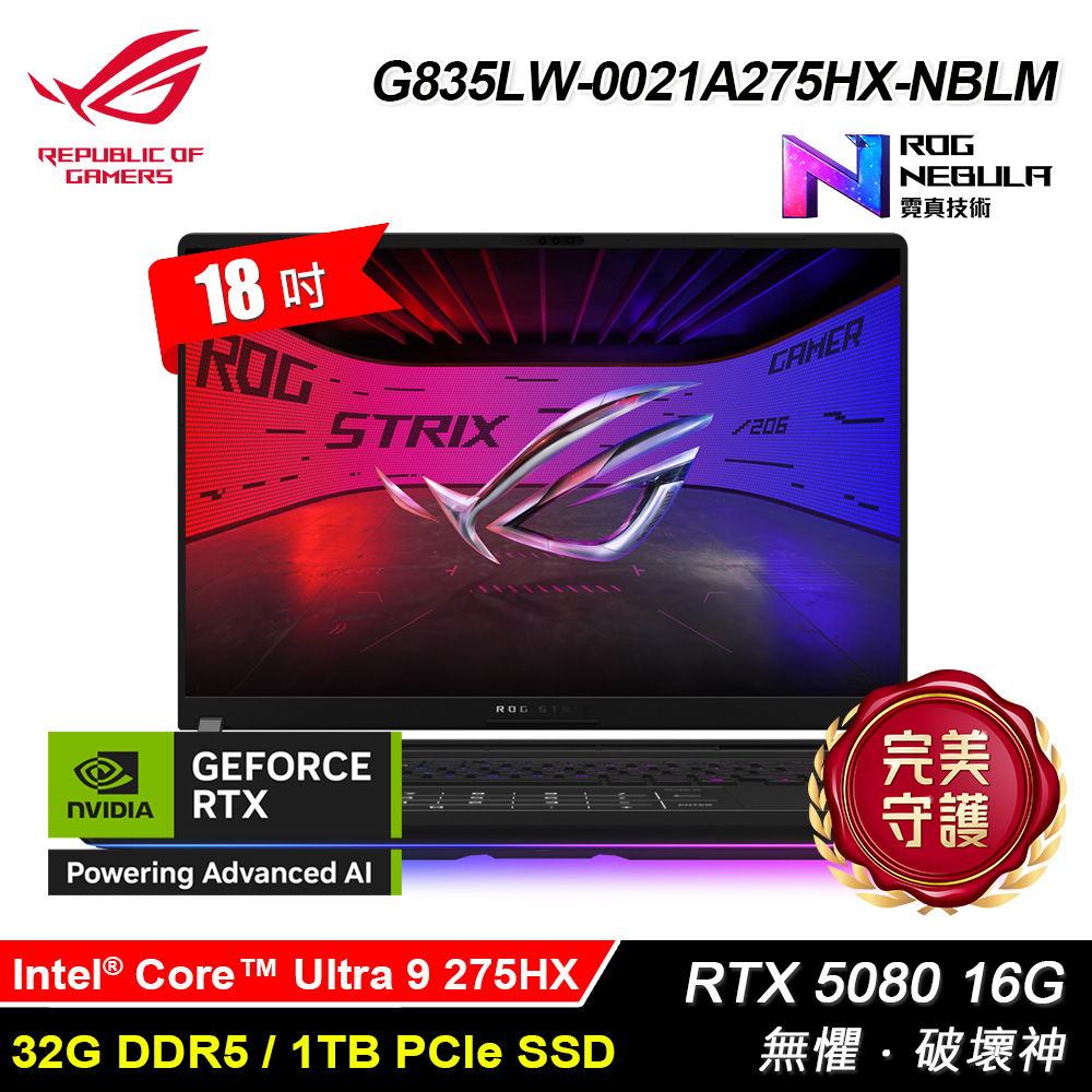 ASUS 華碩|G835LW-0021A275HX-NBLM 18吋 U9 RTX5080 電競筆電