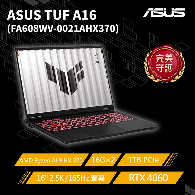華碩 TUF Ryzen AI 9 HX/RTX4060/32G/1T/16吋 御鐵灰 FA608WV-0021AHX370