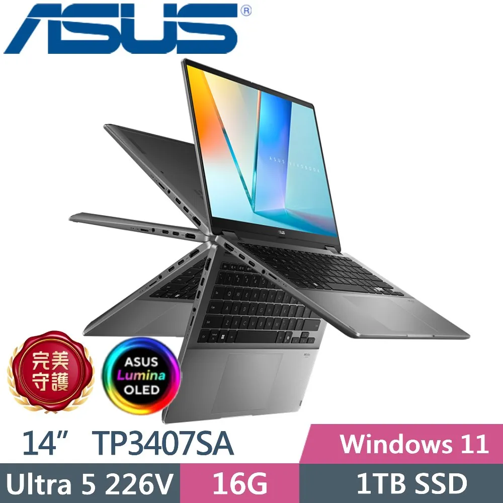 華碩 Vivobook 14 Flip Ultra 5-226V/16G/1T/14吋 夜幕灰 TP3407SA-0023G226V翻轉觸控