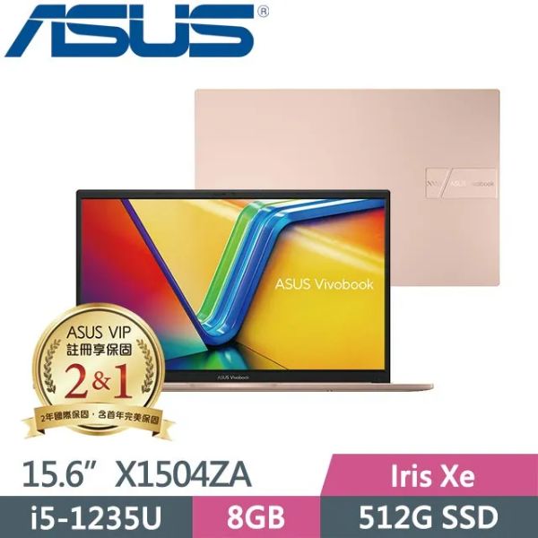 華碩 VivoBook i5-1235U/8G/512G/15吋 蜜誘金 X1504ZA-0171C1235U