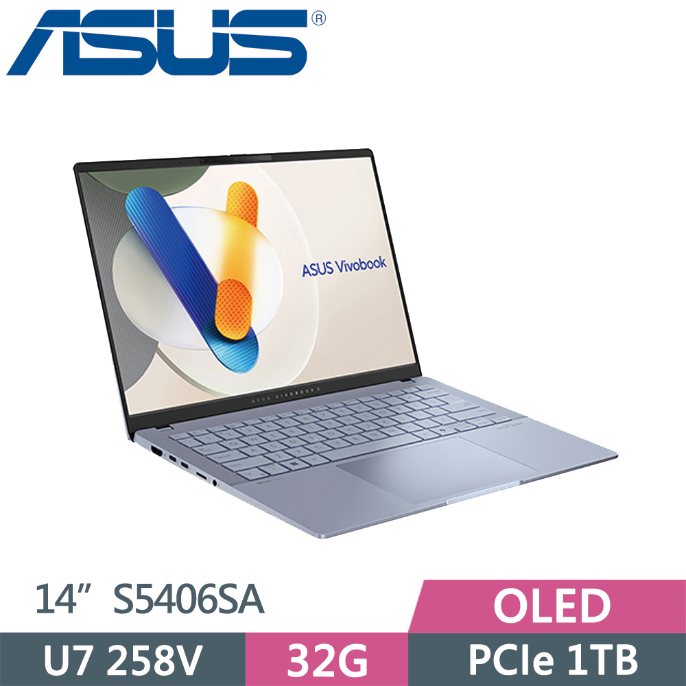 華碩 Vivobook Ultra 7-258V/32G/1T/14吋 迷霧藍 S5406SA-0048B258V