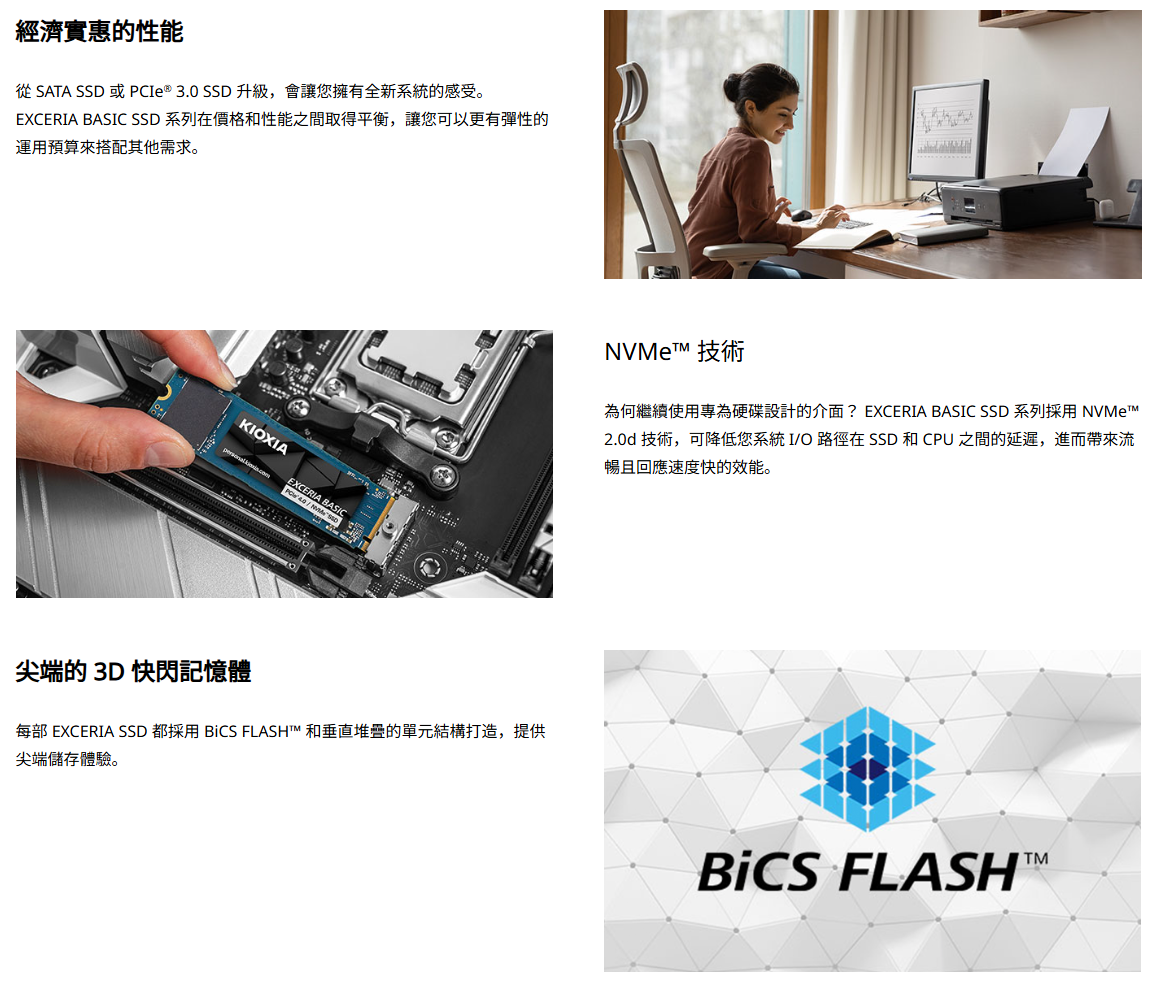 鎧俠 KIOXIA EXCERIA BASIC 1TB PCIe 4.0 讀7200/寫6600/QLC【五年保】