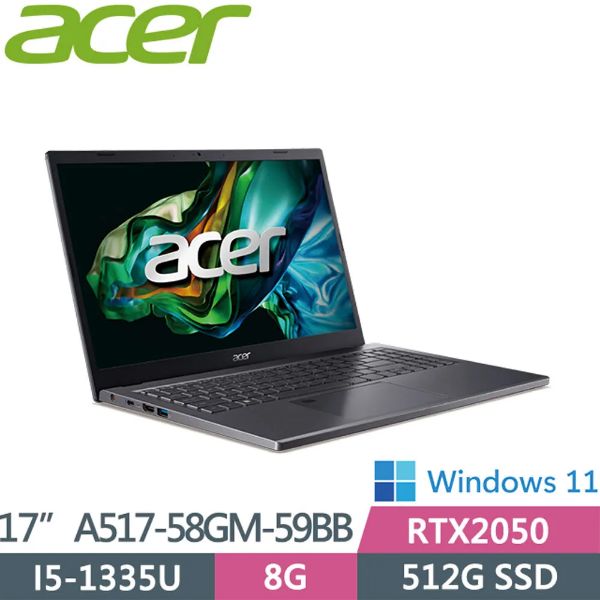 Acer Aspire 5 /i5-1335U/RTX2050/8G/512G/17吋/灰 A517-58GM-59BB