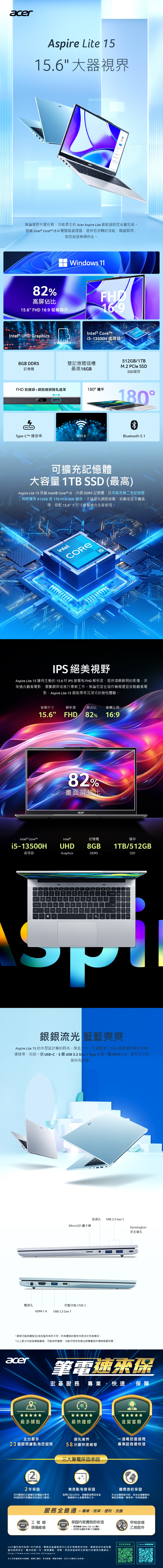 Acer Aspire Lite /i5-13500H/8G/512G/15.6吋/藍 AL15-72P-56Q0