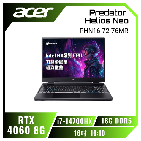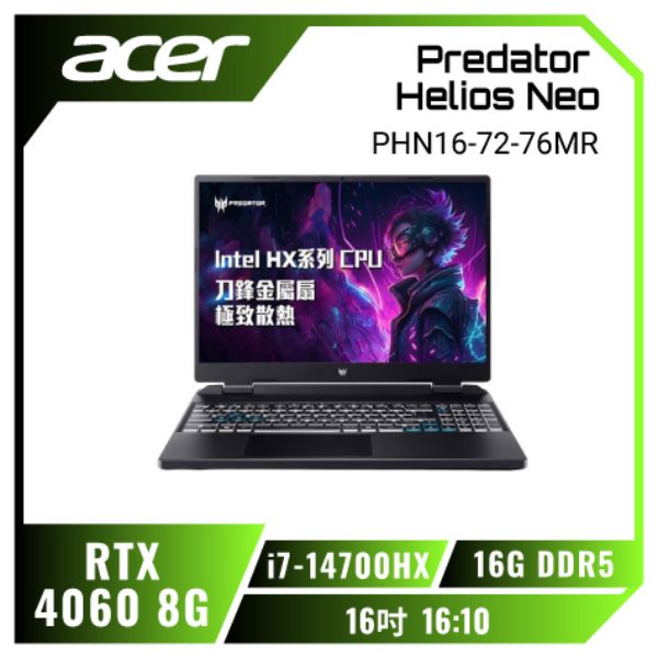 Acer Helios Neo /i7-14700HX/RTX4060/16G/512G/16吋/黑 PHN16-72-76MR
