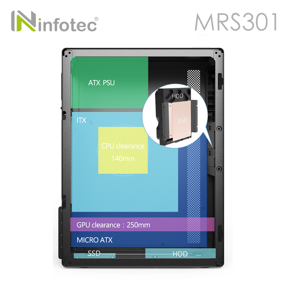 特色 ◆內置HDD x2 & SSD x2 ◆後置8cm風扇孔位 x1(風扇另購) ◆0.6mm加厚全鋼板+黑色/白色全機烤漆 ◆支援標準電源/散熱器限高140mm/顯卡限長250mm ◆前置I/O埠,USB3.0x1/USB2.0x1/HD AUDIO