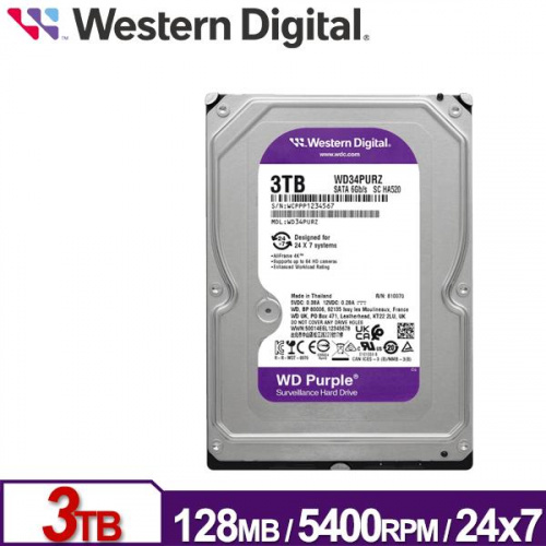WD 3TB【紫標】128M/5400轉/3年保 (WD34PURZ)