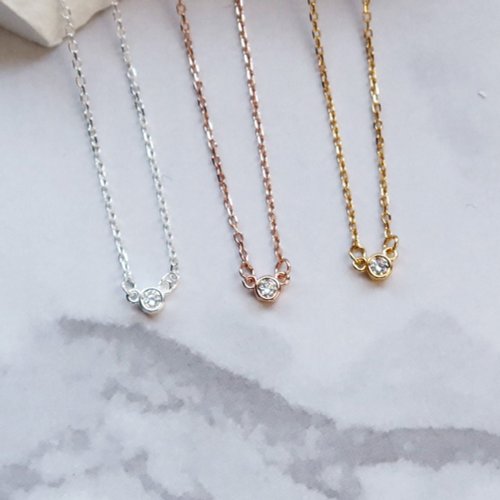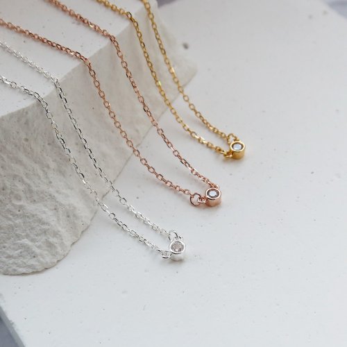 大員囡仔【獨家精選】細小圓x鋯石 925純銀 極細/鎖骨項鍊