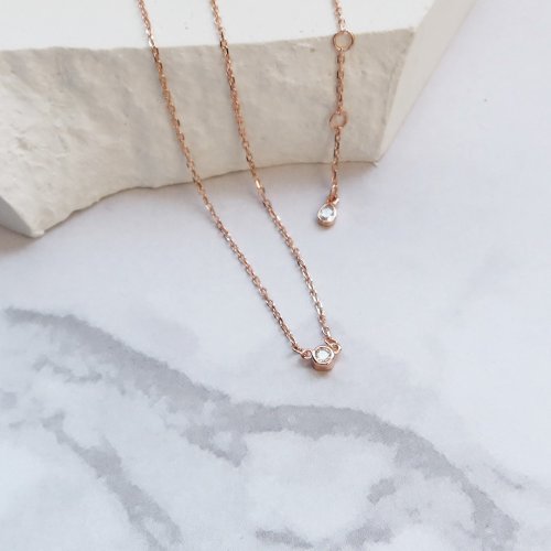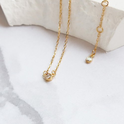 圓形白鋯石搭配細緻細鍊,簡約而優雅,凸顯鎖骨迷人線條。 項鍊是可調節式設計,能依造自己喜好做調整!