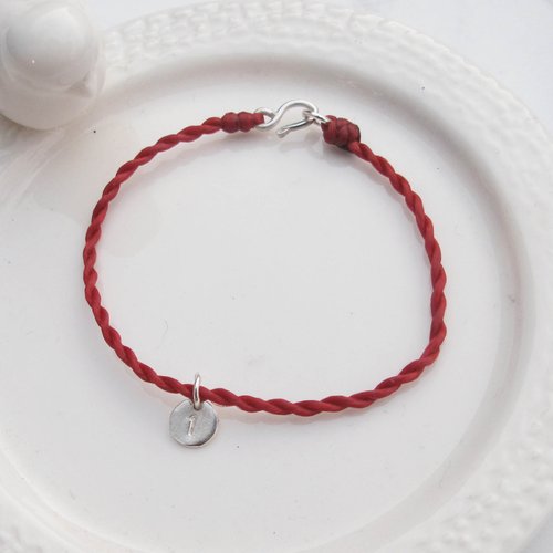 【客製手編蠟繩】文字小銀牌|純銀xK金色 蠟繩幸運手鍊|大員囡 - 手鍊/手環 - 純銀 多色
