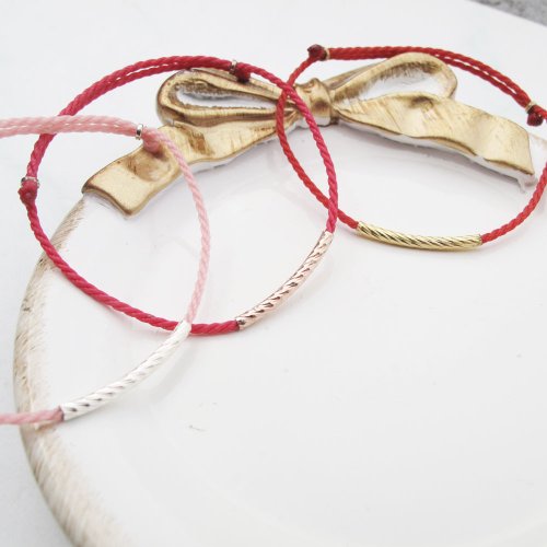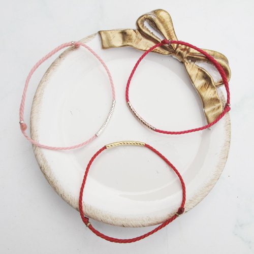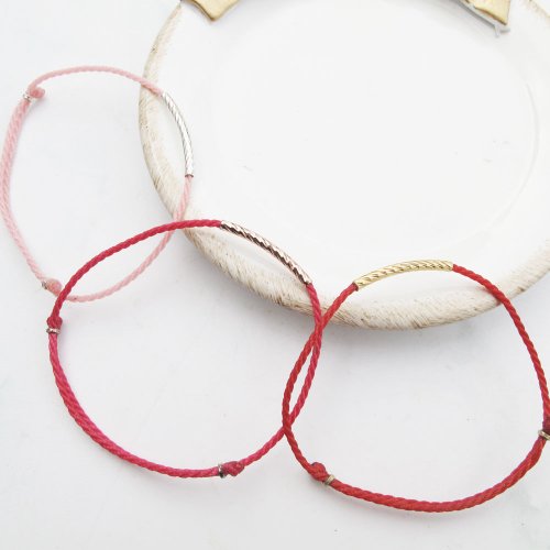 【手編蠟繩】三色花管|純銀 x K金色 紅線蠟繩幸運手鍊|大員囡仔 - 手鍊/手環 - 純銀 多色★ 925純銀不易過敏品質可戴著洗澡,一般正常配戴依體質(酸鹼)不同氧化速度也不同,銀飾氧化變黑後可用牙膏/洗銀水/拭銀布保養清洗,即可回復銀白色澤容易保養。