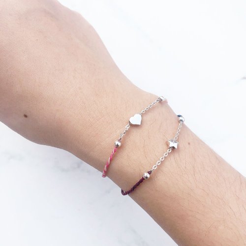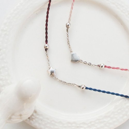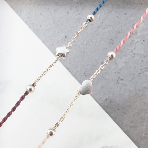 【手編蠟繩】星星x愛心 | 鍊條式 極細蠟線 幸運手繩 | 大員囡 - 手鍊/手環 - 純銀 多色