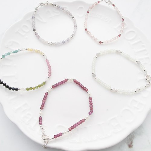 【水晶手串】多彩水晶x天然石2 | 純銀水晶細手鍊 | 大員囡仔