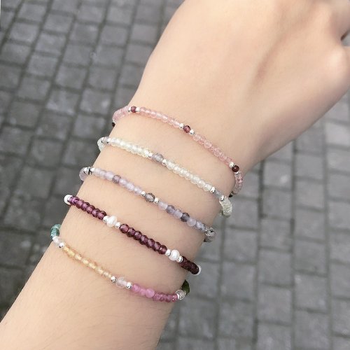 【水晶手串】多彩水晶x天然石2 | 純銀水晶細手鍊 | 大員囡仔 - 手鍊/手環 - 水晶 多色