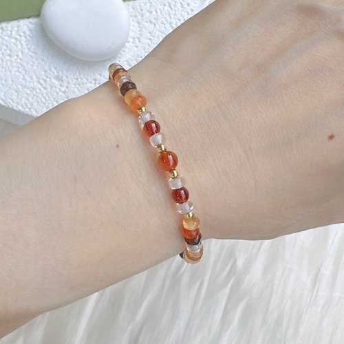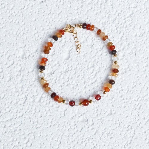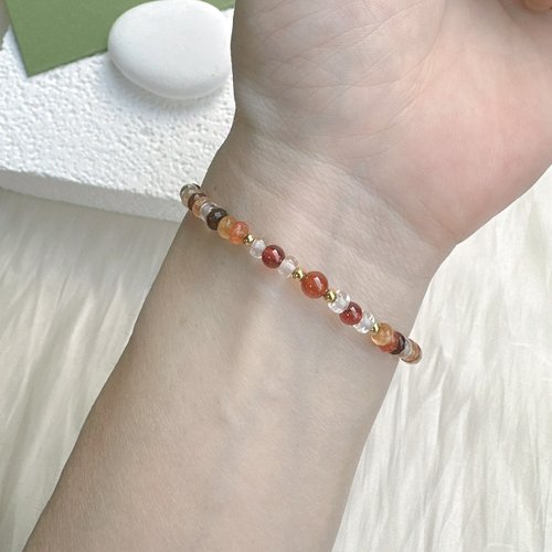 【水晶手串】多彩瑪瑙x橙石榴石x白水晶 天然水晶 正能量手鍊 - 手鍊/手環 - 半寶石 紅色