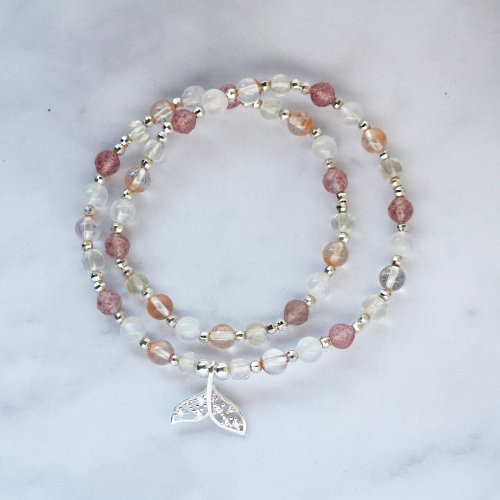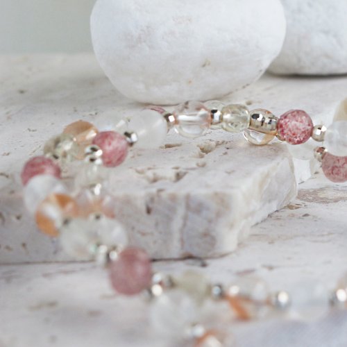 【材質】925純銀/紅兔毛/月光石/草莓晶/檸檬黃水晶