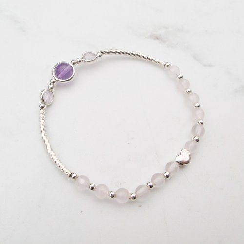 【水晶手串】愛心 | 天然紫水晶x金草莓晶x海藻玉 | 大員囡仔 - 手鍊/手環 - 水晶 多色