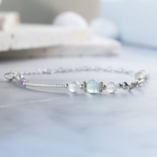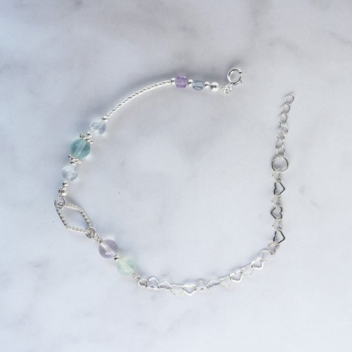 【水晶手串】螢石 |葡萄石|多層次風格| 純銀 水晶手鍊| 大員囡仔 - 手鍊/手環 - 水晶 多色