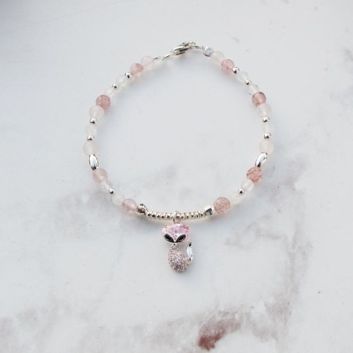 旺人緣~招貴人,粉水晶+草莓晶搭狐狸可以增加異性緣,更容易得到自己想要的愛情,對工作運也有幫助 。