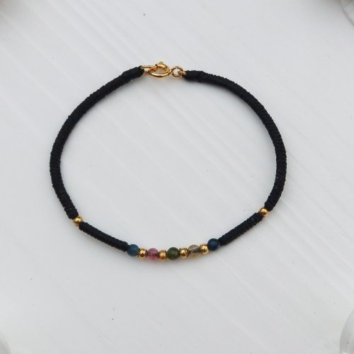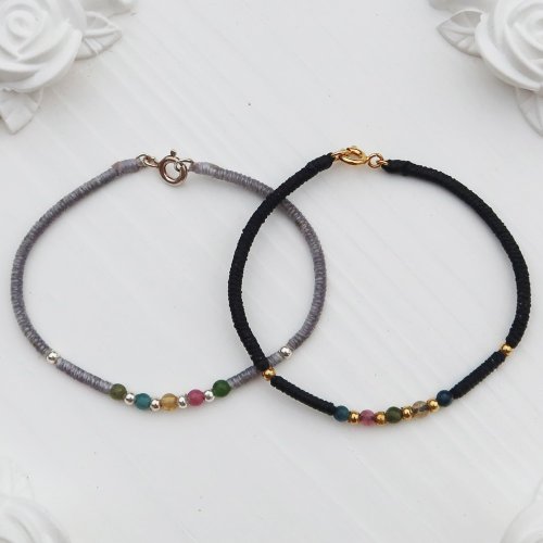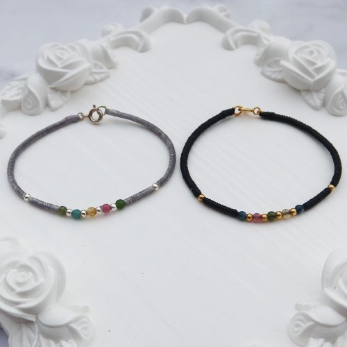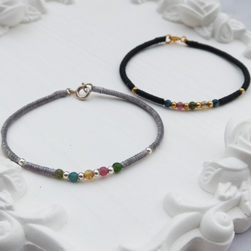 【水晶蠟繩系列】多彩碧璽x金剛結x圓珠x編織蠟線手鍊  | 大員囡 - 手鍊/手環 - 半寶石 多色