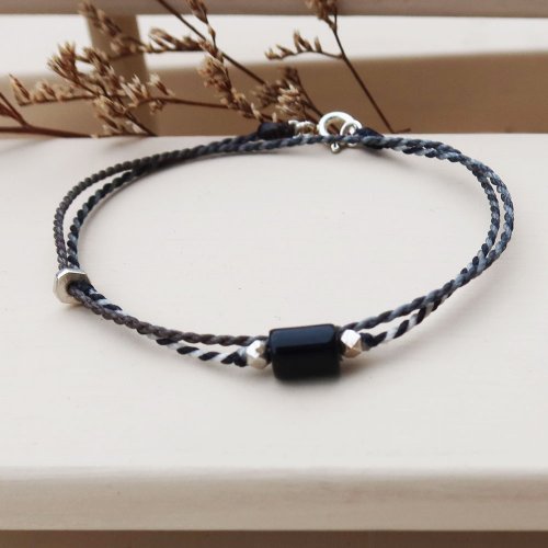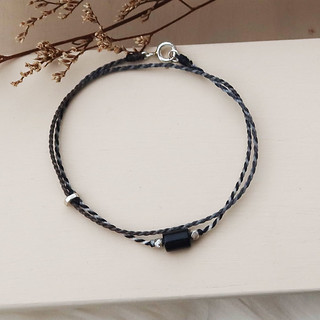 【水晶蠟繩系列】直管黃水晶x黑瑪瑙x紫水晶 極細蠟繩手鍊