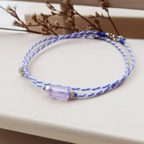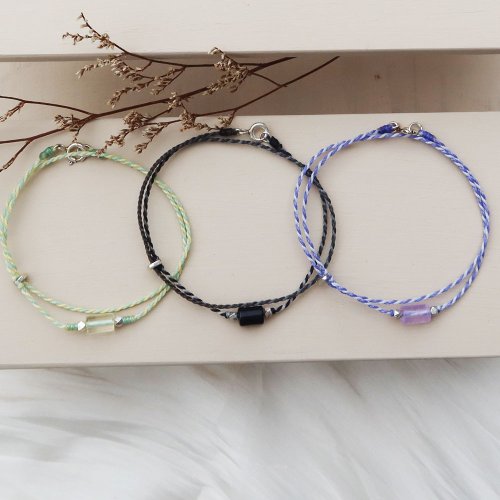 【水晶蠟繩系列】直管黃水晶x黑瑪瑙x紫水晶 極細蠟繩手鍊 - 手鍊/手環 - 水晶 多色